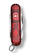 Multiuso da 58 mm con LED a luce bianca con guance rosse translucent. I popolari multiuso tascabili da 58 mm, sono piccoli, leggeri, eleganti ma nel contempo robusti ed efficienti, dei veri e propri compagni indispensabili. lama forbici lima per unghie con cacciavite levacapsule con cacciavite magnetico a croce e spelafili anello portachiavi LED a luce bianca penna a sfera