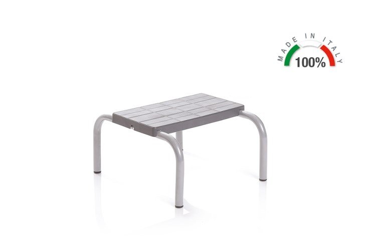 Smontabili, costruiti in tubo di acciaio verniciato. Pedana rivestita con materiale plastico slipresistant.