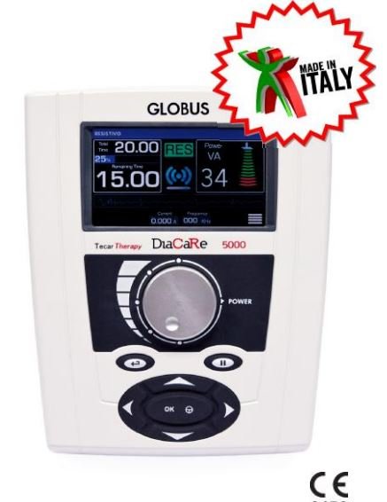 Diacare 5000 Pro è il modello di punta nella gamma di apparecchi per la Tecar Terapia Globus - Trasferimento Energetico Capacitivo Resistivo.