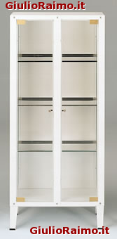 Armadio costruito in lamiera d’acciaio verniciata. Due porte con serratura. Tre ripiani in acciaio inossidabile, regolabili in altezza.