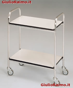 Struttura in tubo di lega leggera. Due piani in bilaminato spessore di 18mm. Montato su ruote di 80mm di diametro. Caratteristiche tecniche Senza ringhiere CM 70x50x80H