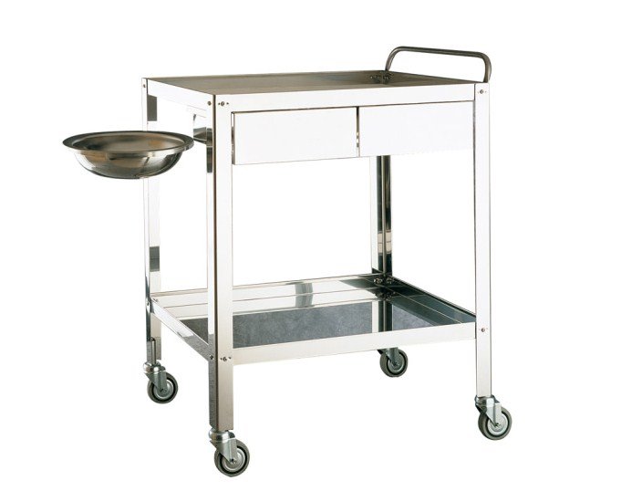 Costruiti interamente in acciaio inox 18/10. Maniglia di spinta. Montati su ruote di Ø 80mm. Hanno una portata massima complessiva di circa 60 Kg. da suddividere per il numero dei ripiani.
