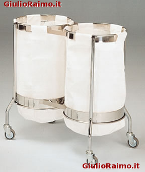 Telaio in tubo d’acciaio cromato. Montato su ruote diam. 80 mm. Diametro del supporto: 46 cm. Altezza 95 cm.