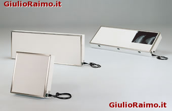 NEGATIVOSCOPIO DA PARETE Costruito in lamiera d’acciaio verniciata. Corpo diviso in sezioni utilizzabili anche separatamente. Diffusore monocromatico bianco. Illuminazione omogenea a luce fredda fluorescente. Dispositivo reggi pellicole in acciaio inox. 230V – 50/60 Hz