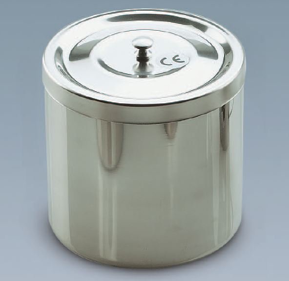 Interamente stampato in acciaio inox 18/10. Coperchio a cerniera. A5-300-10C - Ø 100x100 h mm. A5-301-12C - Ø 120x120 h mm. A5-302-15C - Ø 150x150 h mm