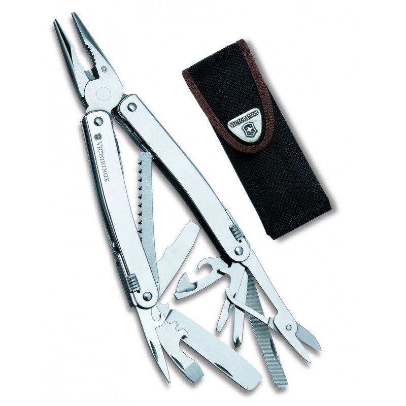 SwissTool Spirit arriva dallo stesso fabbricante che da oltre 100 anni produce l'originale multiuso dell'esercito svizzero. Già nel 1999 la robusta SwissTool ha ricevuto menzioni per la sua versatilità, funzionalità e semplicità d'uso. La Spirit è più ergonomica, elegante e pesa solo 205 gr invece di 285 gr Caratteristiche tecniche - pinza multifunzione con becchi a punta - cacciavite 2 mm - cacciavite 3 mm - tagliafili per cavi fino a una durezza di 40 HRc - levacapsule - cacciavite 6 mm - apricasse - lama parzialmente ondulata - forbici - lima per metalli - sega per metalli - sega per legno - punteruolo-alesatore - cacciavite Phillips (1+2) - scalpello/raschietto - taglia guaine longitudinale - piegafili - spelacavi - raschiafili - apriscatole - gancio - incavo per cavatappi - tronchese per fili duri - foro per cordino - molle di bloccaggio - sblocco - fodero in Nylon senza gancio girevole