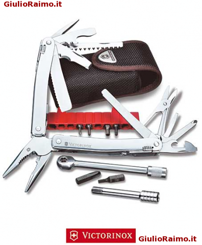 SwissTool Spirit arriva dallo stesso fabbricante che da oltre 100 anni produce l'originale multiuso dell'esercito svizzero. Già nel 1999 la robusta SwissTool ha ricevuto menzioni per la sua versatilità, funzionalità e semplicità d'uso. La Spirit è più ergonomica, elegante e pesa solo 205 gr invece di 285 gr Caratteristiche tecniche - pinza multifunzione con becchi a punta - cacciavite 2 mm - cacciavite 3 mm -tagliafili per cavi fino a una durezza di 40 HRc - levacapsule - cacciavite 6 mm - apricasse - lama parzialmente ondulata - forbici - lima per metalli - sega per metalli - sega per legno - punteruolo-alesatore - cacciavite Phillips (1+2) - scalpello/raschietto - taglia guaine longitudinale - piegafili - spelacavi - raschiafili - apriscatole - gancio - incavo per cavatappi - tronchese per fili duri - foro per cordino - molle di bloccaggio - sblocco - fodero in pelle - porta bit - chiave per bit - inserto esagonale 3 - inserto esagonale 4 - inserto Phillips 0 - inserto Phillips 3 - inserto Torx 10 - inserto Torx 15 - spazio libero per altro bit - chiave a cricchetto - prolunga per bit