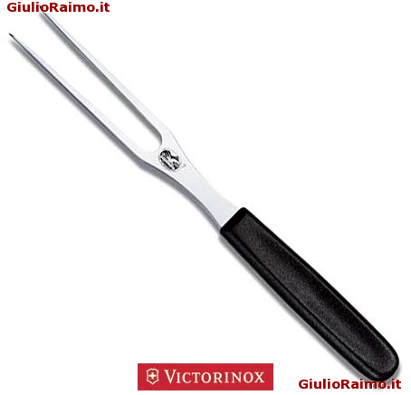 Forchettone piatto con manico nero.