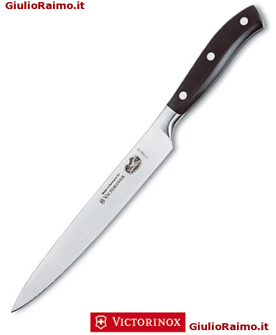 Trinciante stretto con lama da 20 cm, che fa parte della nuova linea di coltelli forgiati da cucina realizzati in Germania appositamente per Victorinox, controllati singolarmente e rifiniti dalle sapienti mani artigiane dei tecnici della fabbrica svizzera direttamente ad Ibach. L'assortimento di modelli e misure è in grado di soddisfare le esigenze dei cuochi professionali più esigenti, così come il design moderno e funzionale possono integrare l'arredamento di cucine particolarmente raffinate. Naturalmente tutto ciò senza perdere di vista la proverbiale perfezione e durata del tagliente, riferimento essenziale di ogni lama Victorinox.