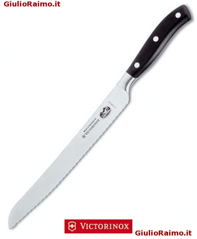 Coltello da pane con lama ondulata da 23 cm, che fa parte della nuova linea di coltelli forgiati da cucina realizzati in Germania appositamente per Victorinox, controllati singolarmente e rifiniti dalle sapienti mani artigiane dei tecnici della fabbrica svizzera direttamente ad Ibach. L'assortimento di modelli e misure è in grado di soddisfare le esigenze dei cuochi professionali più esigenti, così come il design moderno e funzionale possono integrare l'arredamento di cucine particolarmente raffinate. Naturalmente tutto ciò senza perdere di vista la proverbiale perfezione e durata del tagliente, riferimento essenziale di ogni lama Victorinox